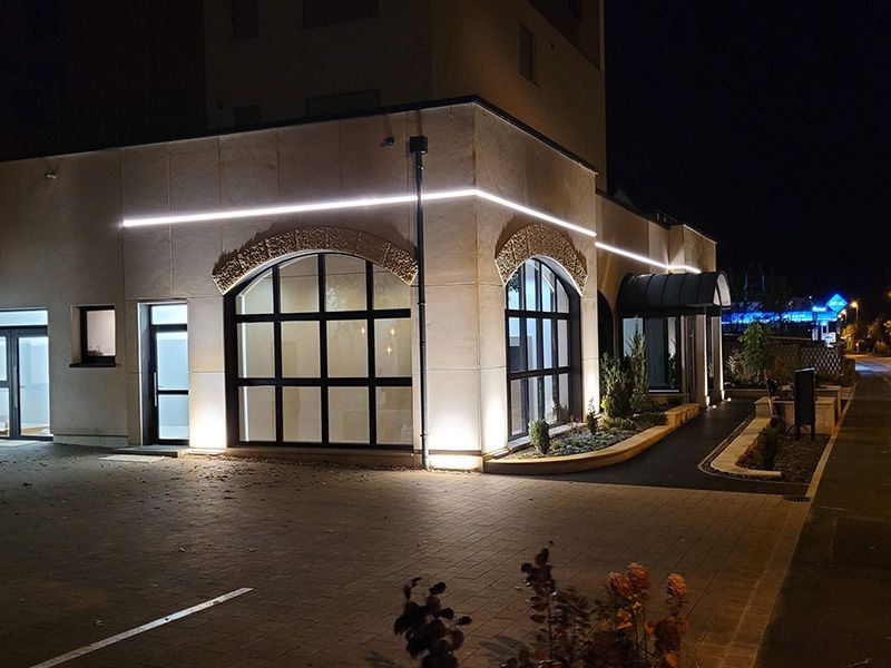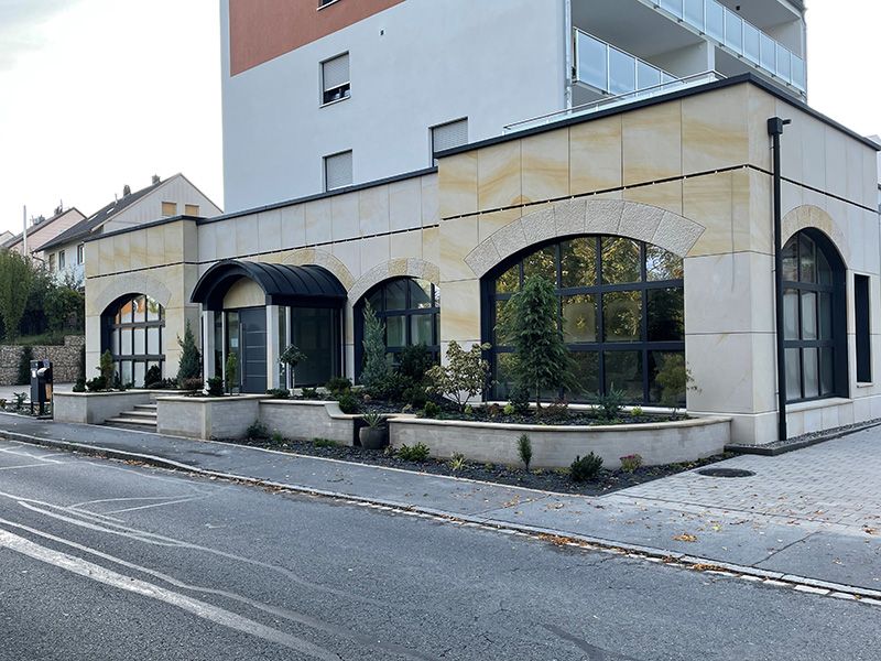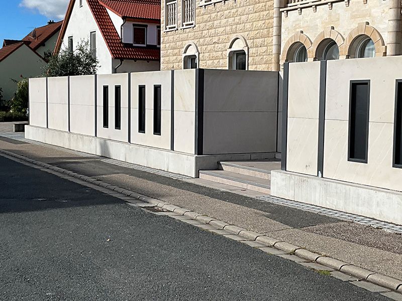 Gerne verlegen wir auf Wunsch auch die passenden Bodenplatten, Sockel und Fensterbänke.