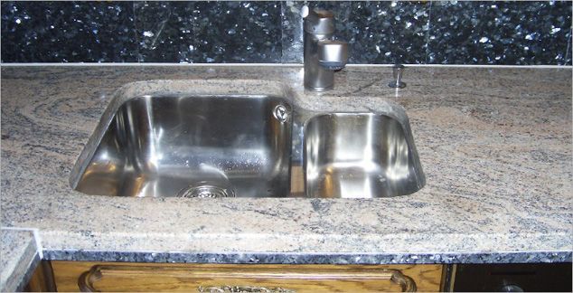 Die Zubereitung der Speisen kann problemlos auf der Arbeitsplatte erfolgen. Ein Zerkratzen der hochglanzpolierten Oberfläche durch ein Messer ist fast unmöglich. Granitarbeitsplatten können mit normalen Reinigungsmitteln abgewischt werden. Nach dem Einbau Ihrer Küche können Sie unseren Service für ein Aufmaß in Anspruch nehmen, oder wir übernehmen auf Wunsch auch Ihre Maße zur Fertigstellung. Bei den von unten montierten Spülbecken ist eine Abtropffläche meist schräg zum Becken hin eingefräst und poliert. Es besteht aber auch die Möglichkeit, die Becken in herkömmlicher Art oder auch flächenbündig zu befestigen.